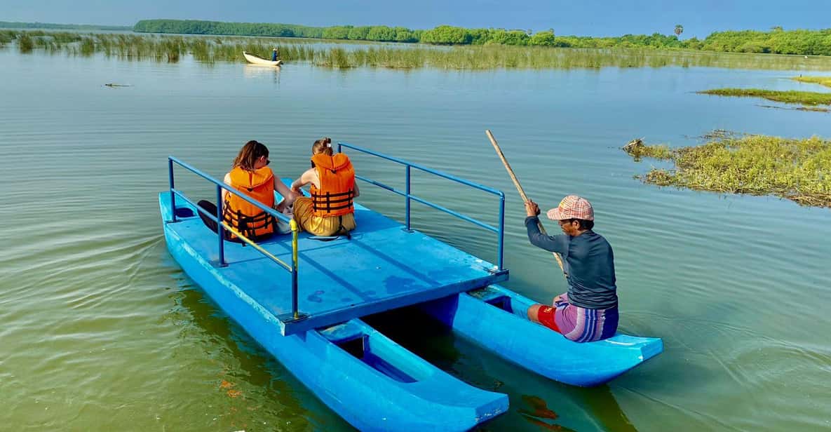 Pottuvil Lagoon is located 4 km from Arugam Bay with a view of Whiskey Point and Pottuvil Point. Over 200 acres in size and inside the lagoon is a small, beautiful island. The lagoon is surrounded by mangrove forests that are home to an abundance of wildlife. During the two-hour canoe tour through Pottuvil Lagoon you will experience the serenity and beauty of a mangrove ecosystem which includes: Marine life such as fish, prawns, crabs and others Birds such a sea eagles, kingfishers, pelicans, herons, Jacana, common coots, and darters. In the trees you can see both varieties of Sri Lankan monkeys Elephants live on the small island or in the jungle Crocodiles on the shore or in the mangrove tree roots and Water monitors